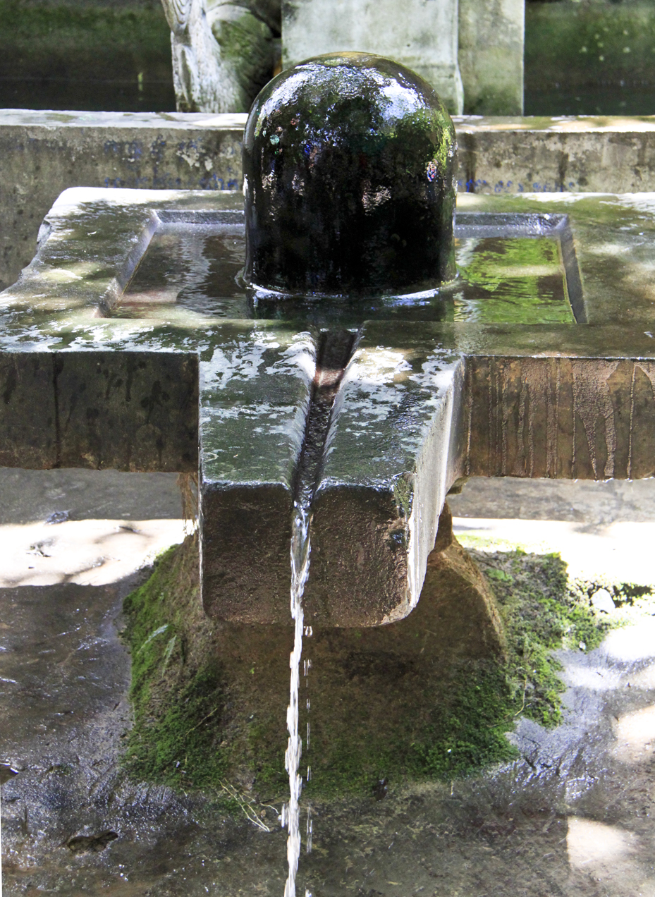 Von den Lingams oder Lingas habe ich schon an früherer Stelle gesprochen. Lingam und Yoni, symbolische Darstellungen von Penis und Vagina, die ursprünglich Teil eines Fruchtbarkeitskultes waren und später von den Shivaiten übernommen und mit Shiva und seiner Frau Parvati gleichgesetzt wurden (unpersönliche Darstellung des Götterpaares). Der Ausfluss des Yoni liegt immer Richtung Norden. Es wurde Milch, Wasser oder eine Mischung aus Wasser und Milch über den Lingam gegossen und im Yoni aufgefangen. Die durch die symbolische Ejakulation geheiligte Flüssigkeit wurde anschließend getrunken oder anderweitig verwendet. Lingams finden sich in jedem Shivatempel und in jeder Größe. In einem Tempel fanden wir sogar zwei Lingams in einer Yoni, woraufhin der Reiseleiter bemerkte: „Hierzu erübrigt sich jeder weitere Kommentar.“