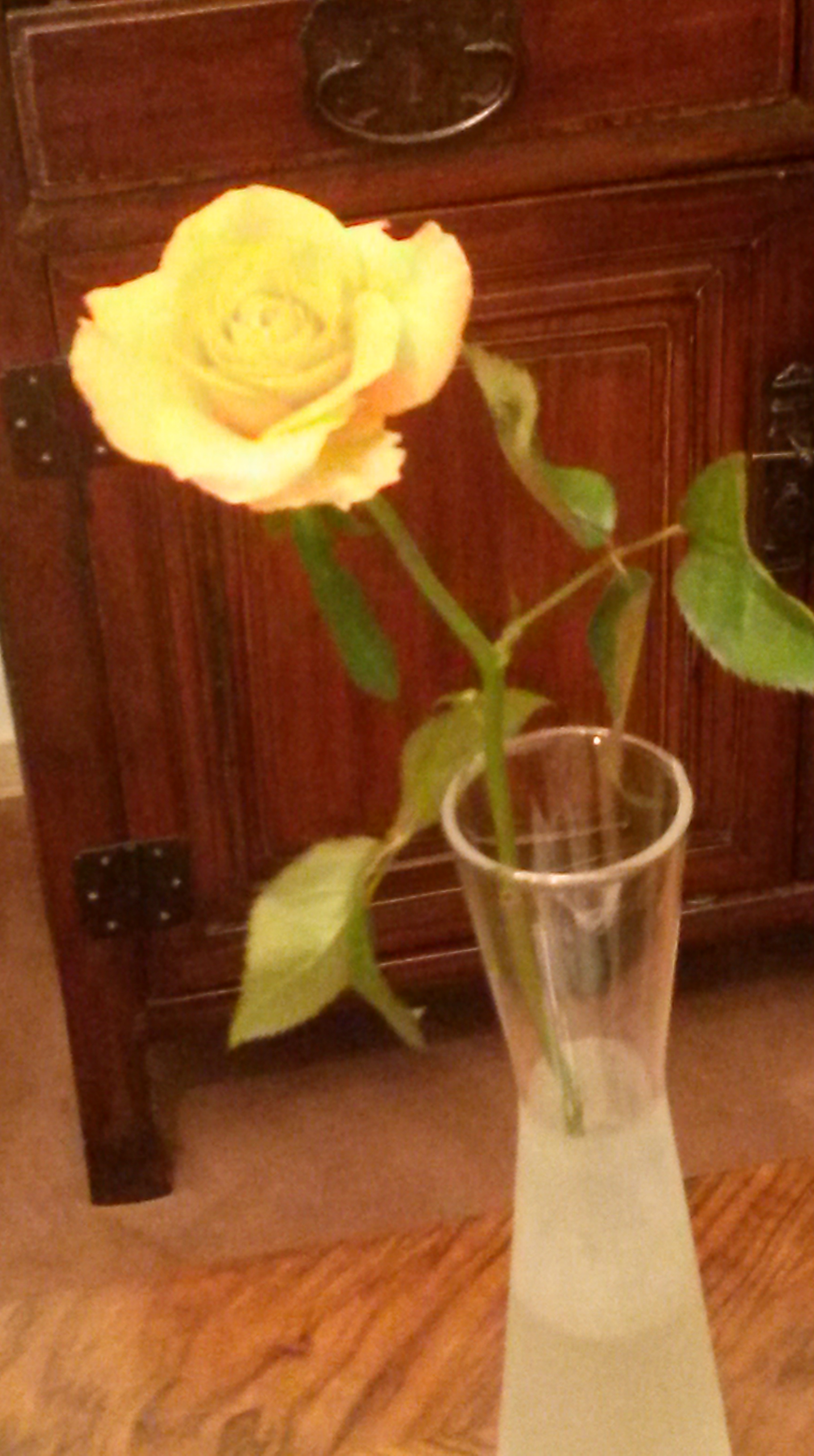 Die Lesung am Freitag im Rückert-Gymnasium war eine gemütliche kleine Veranstaltung. Der Raum war stimmungsvoll dekoriert und die Atmosphäre entspannt. Ich war fast gar nicht aufgeregt und habe, hoffe ich, auch nicht zu schnell gelesen. Die Zuhörer entsprachen vielleicht vom Alter her nicht ganz meiner Zielgruppe (eher schon die Eltern und Lehrer 🙂 ), aber das tat dem Spaß keinen Abbruch. Zwei Mädchen baten anschließend um ein Autogramm – da schlägt das Autorenherz doch höher. Zum Abschied gab’s sogar ein Röschen, das immer noch lebt (s. Foto).