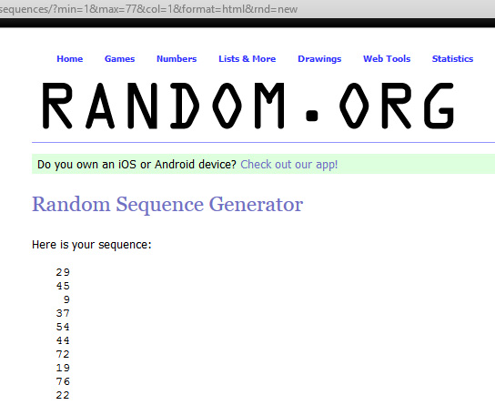 So, ihr Lieben, die glücklichen Gewinner(innen) stehen fest. Ich habe aus allen Kommentaren eine Tabelle erstellt, fortlaufend von oben nach unten und von Blogtag 1 – 6. Diese Tabelle habe ich mittels RANDOM.ORG in eine zufällige Reihenfolge bringen lassen und die ersten drei Zahlen genommen.