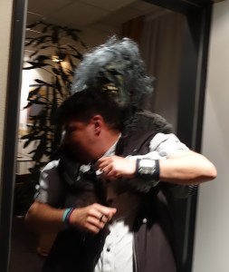 Vor dem Abendessen gab es noch einen Poetryslam, der großartig von Oliver Guntner in drei Rollen bestritten wurde, bevor wir dann dem oben beschriebenen Blutrausch anheimfielen – mit Oliver in seiner gruseligsten Rolle. 😀
