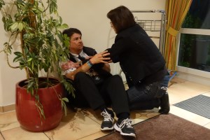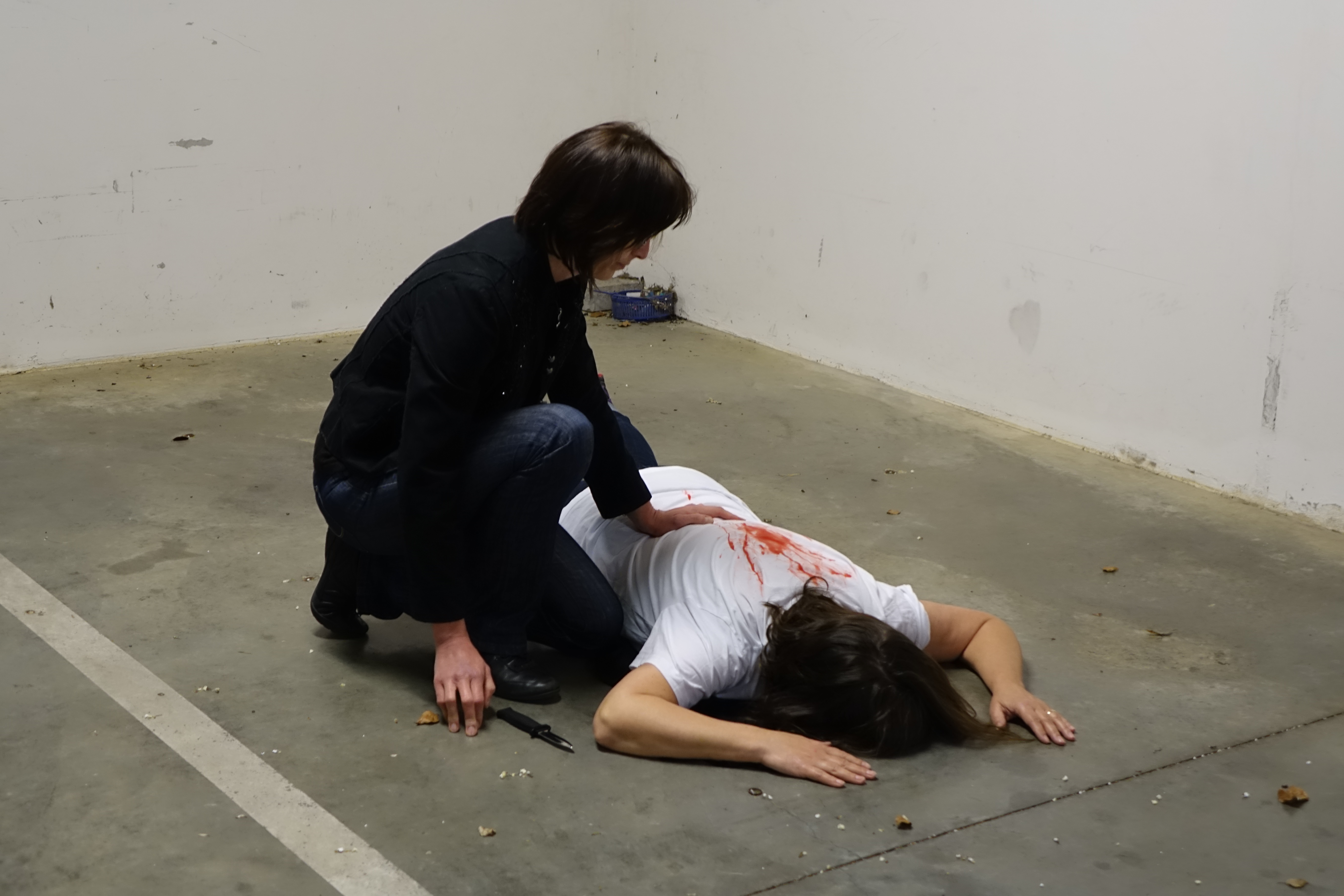 Glücklicherweise ist unser Vizevorsitzender T. A. Wegberg nicht wirklich einem Monsterangriff zum Opfer gefallen, sondern es war alles nur eine Inszenierung. Am ersten Kongressabend haben wir nämlich an wechselnden Schauplätzen meine Horror-Kurzgeschichte „Zimmer 26“ aufgeführt. Das Wetter hat netterweise mitgespielt, teilweise waren wir nämlich im Außenbereich unterwegs. Nein, die Nachbarn haben nicht die Polizei gerufen. 🙂 Dafür hatten Darsteller und Zuschauer gleichermaßen ihren Spaß.