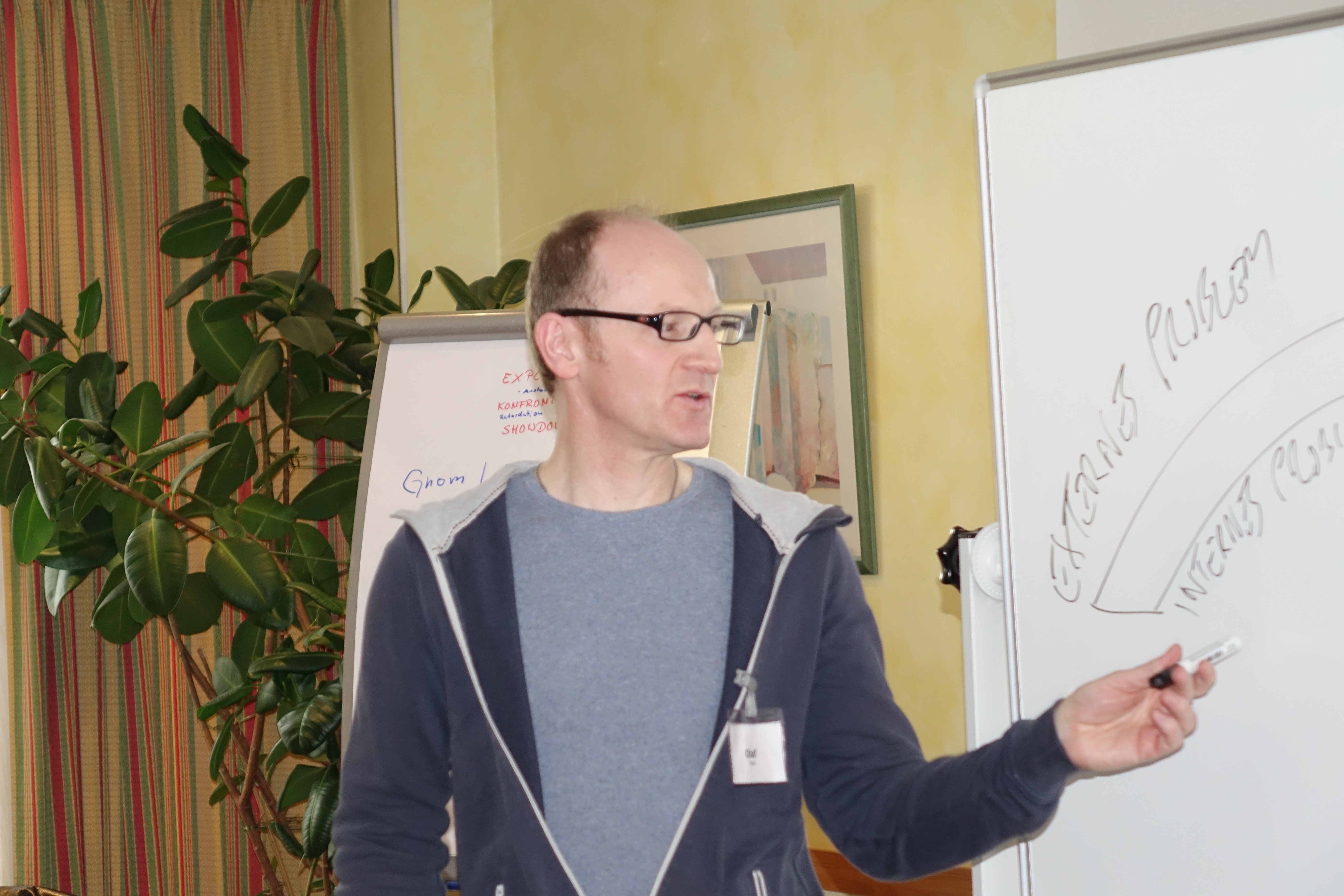 Mit Helga Rattay folgte ein spannender Einstieg in Genogramme und Figurenaufstellung, die ihren Ursprung in der Familientherapie haben, sich aber auch hervorragend dafür eignen, den eigenen Romanfiguren näherzukommen. Wenn noch dazu nicht Holzfiguren, sondern echte Menschen in die Rolle der Figuren schlüpfen, gewinnt das Ganze eine unglaubliche Dynamik, die für unerwartete Entwicklungen sorgen kann.